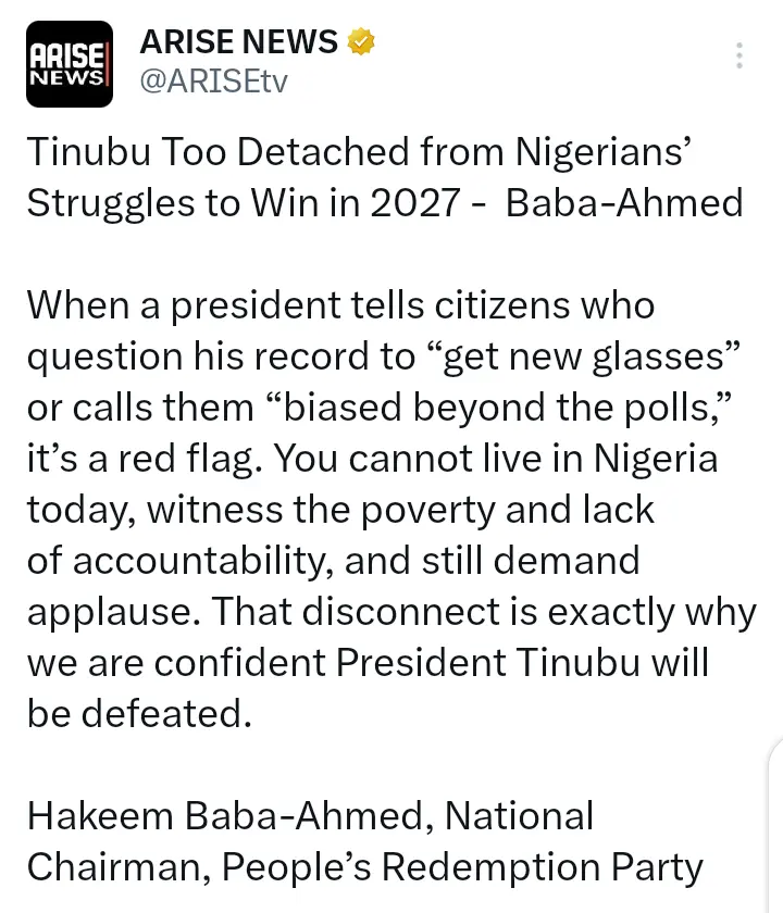In the post that surfaced online, Hakeem Baba-Ahmed stated that the statement that was made by President Bola Ahmed Tinubu is a red flag. He said the President spoke like a person who is not connected with the realities of the Nigerian people.