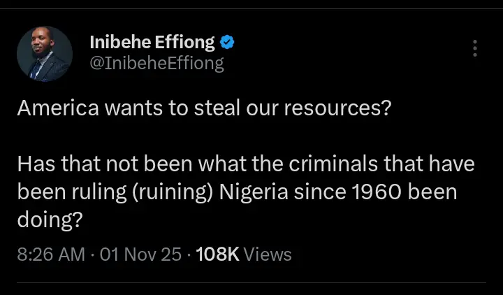 Effiong argued that it was ironic for Nigerians to accuse foreign nations of exploitation when local politicians have long looted the country’s treasury and mismanaged its resources.