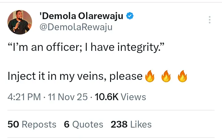 Demola Olanrewaju’s statement was contained in a post that he shared on his official X handle on Tuesday, November 11, 2025.