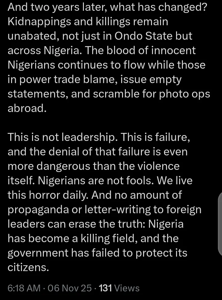 “It was a horrifying reminder that targeted killings of Christians are no longer confined to the North, they have reached deep into the South. Owo is in the Southwest, for crying out loud! You may deny it, twist it, or spin it for political correctness, but the fact remains that it was too close for comfort”. View, More,