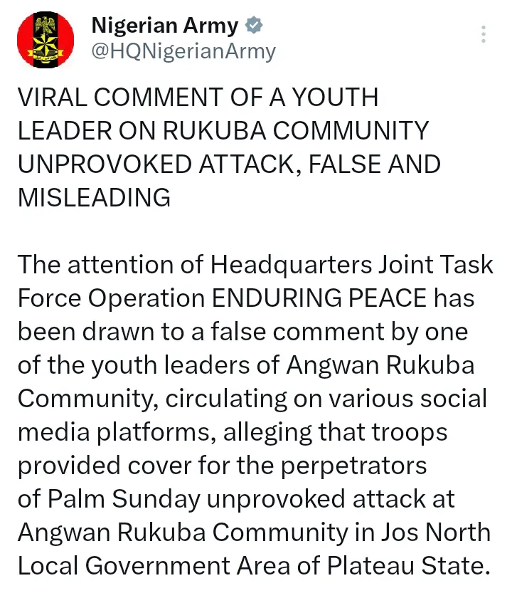 Here is what the Nigerian Army wrote on its official X handle;