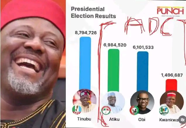The former lawmaker who represented Kogi West and one of the chieftains of the African Democratic Congress, ADC, Senator Dino Melaye has taken to his official X account on March 29, 2026 to react to a table showing the total votes of Alhaji Waziri Atiku Abubakar, Peter Obi and Rabiu Musa Kwankwaso.