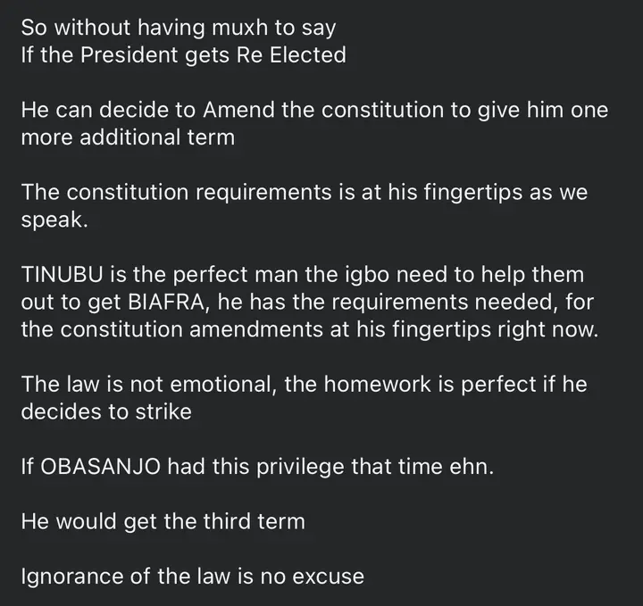 The statement added that if President Tinubu is re-elected, he could choose to initiate such an amendment process, potentially paving the way for an additional term. Igbokwe emphasized that the law operates independently of emotions, suggesting that political realities and numbers play a more decisive role in such matters.