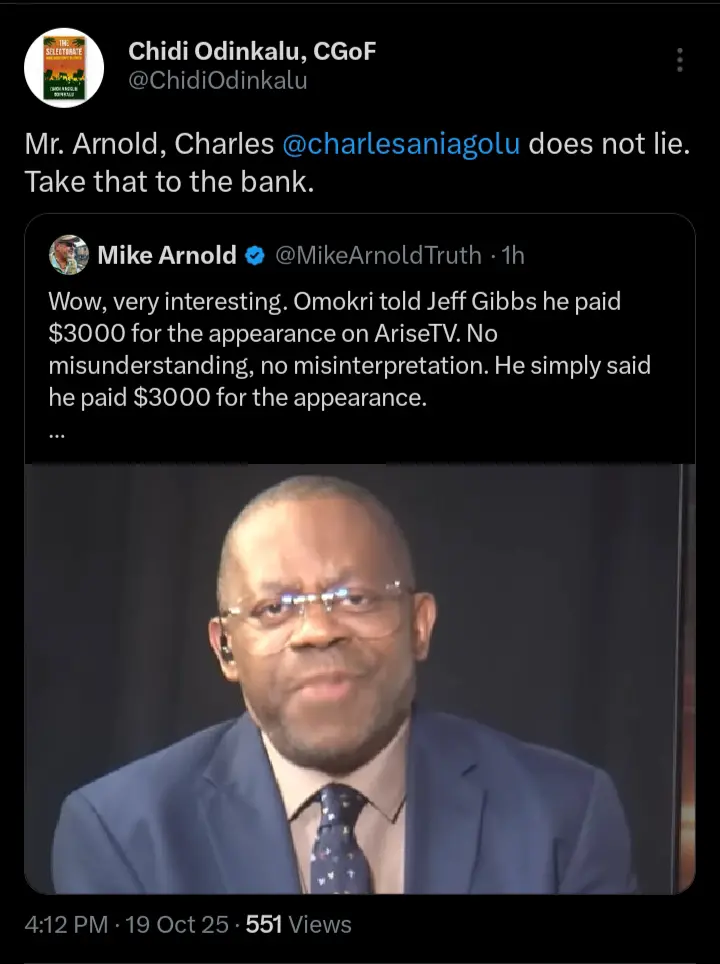 Chidi Odinkalu, a respected human rights activist and legal expert recently reacted after former presidential aide and prominent member of former president Goodluck Jonathan’s cabinet, Reno Omokri admitted that he paid a certain amount of money to appear on popular television outlet, AriseTv. According to the statements which were shared on his official X handle, he pointed out that the individual who provided the information told the whole truth.