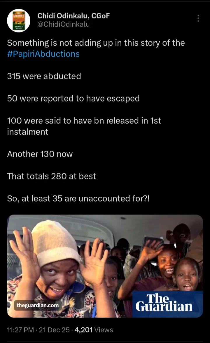 The news regarding the release of over one hundred and thirty school children abducted from a secondary school in Papiri, Niger State generated mixed reactions after the reports went viral across various social media platforms.
