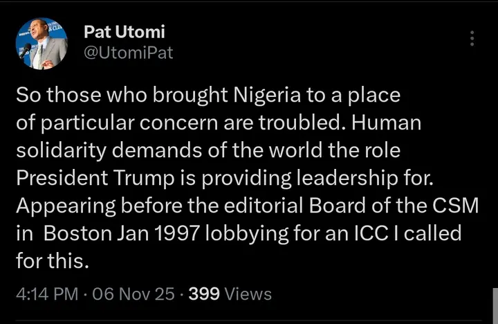 However, while he was reacting to the development on his verified X handle, Pat Utomi, said that those who brought Nigeria into the development are now troubled by the declaration.