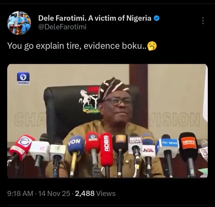 Reacting, Dele Farotimi, in the statements which were published on his official X handle on Friday November 14th 2025, pointed out that the explanations provided by the former governor were not enough as the evidence was already in public eyes. View, More,