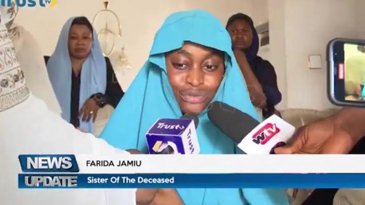 However, in the video from 5:17 posted by TrustTV News, Farida Jamiu, sister to the deceased, Abdulssamad Jamiu, revealed that she heard gunshots at her residence and perceived smoke when she arrived downstairs only to be dragged away by the soldiers when she requested the whereabouts of her brother.
