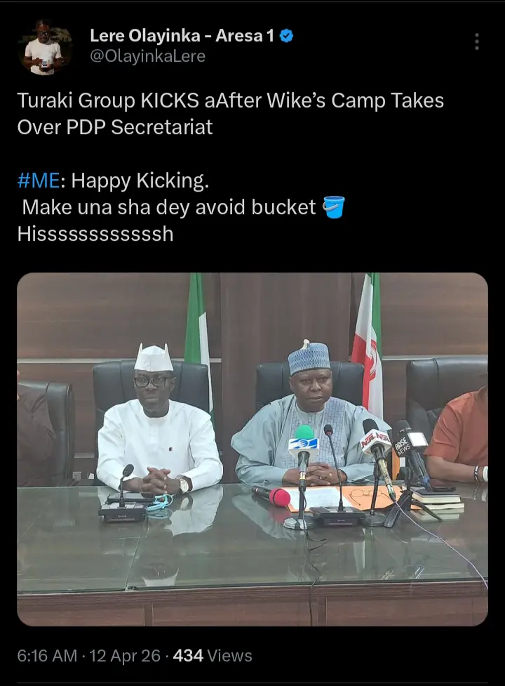 Lere Olayinka, the senior special adviser on media to the former governor of Rivers State and FCT minister, Nyesom Wike recently reacted after Tanimu Turaki, the chairman of the People’s Democratic Party, PDP kicked against the taking over of the PDP secretariat by the FCT minister’s camp. According to the statements which were shared on his official X handle, he pointed out that the comments from the chairman was unnecessary.