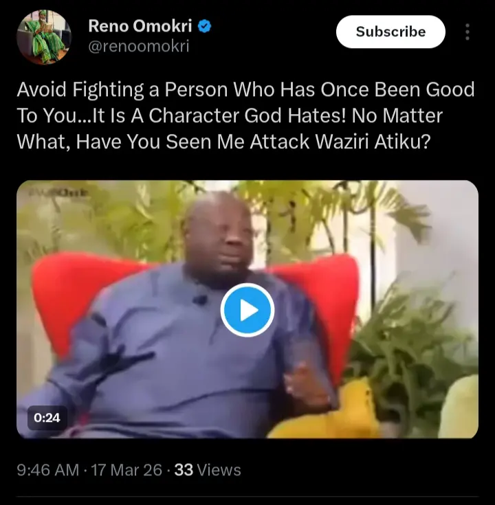 These were the words of Reno Omokri which he shared on his official X handle;