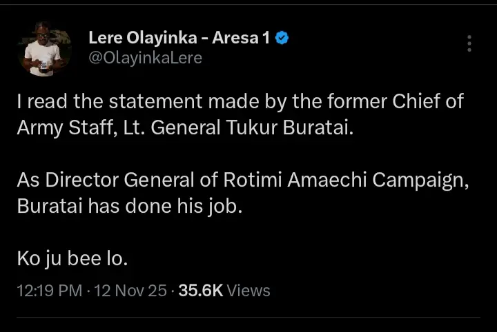These were the words of Lere Olayinka which he shared on his official X handle,