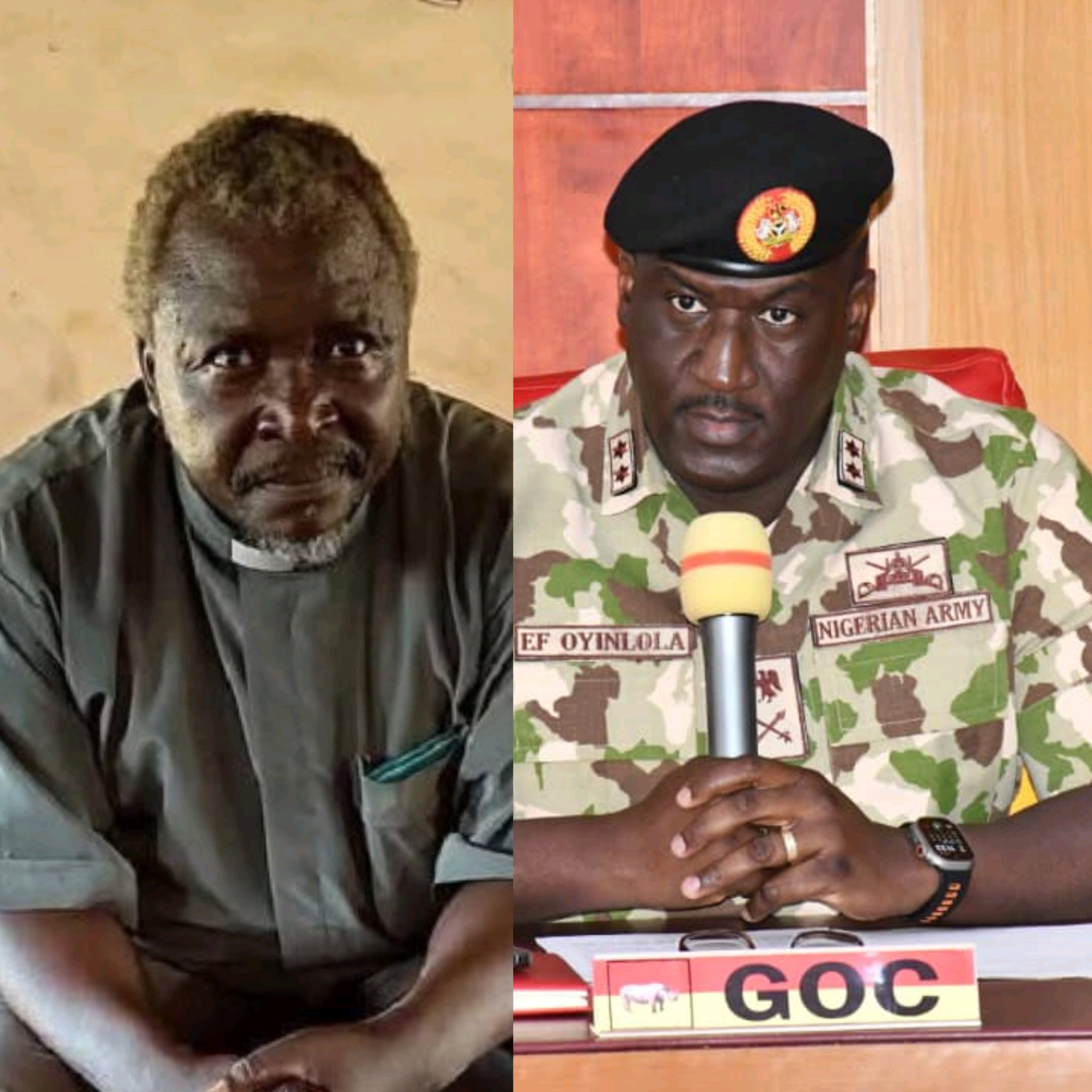 In a video posted by Voice TV from 2:42, Major General Oyinlola was seen addressing the clergyman directly during a visit to his church in Jos. The GOC’s visit came after rumours circulated that some groups had marked Rev. Dachomo for assassination because of his outspoken condemnation of attacks on Christian communities.