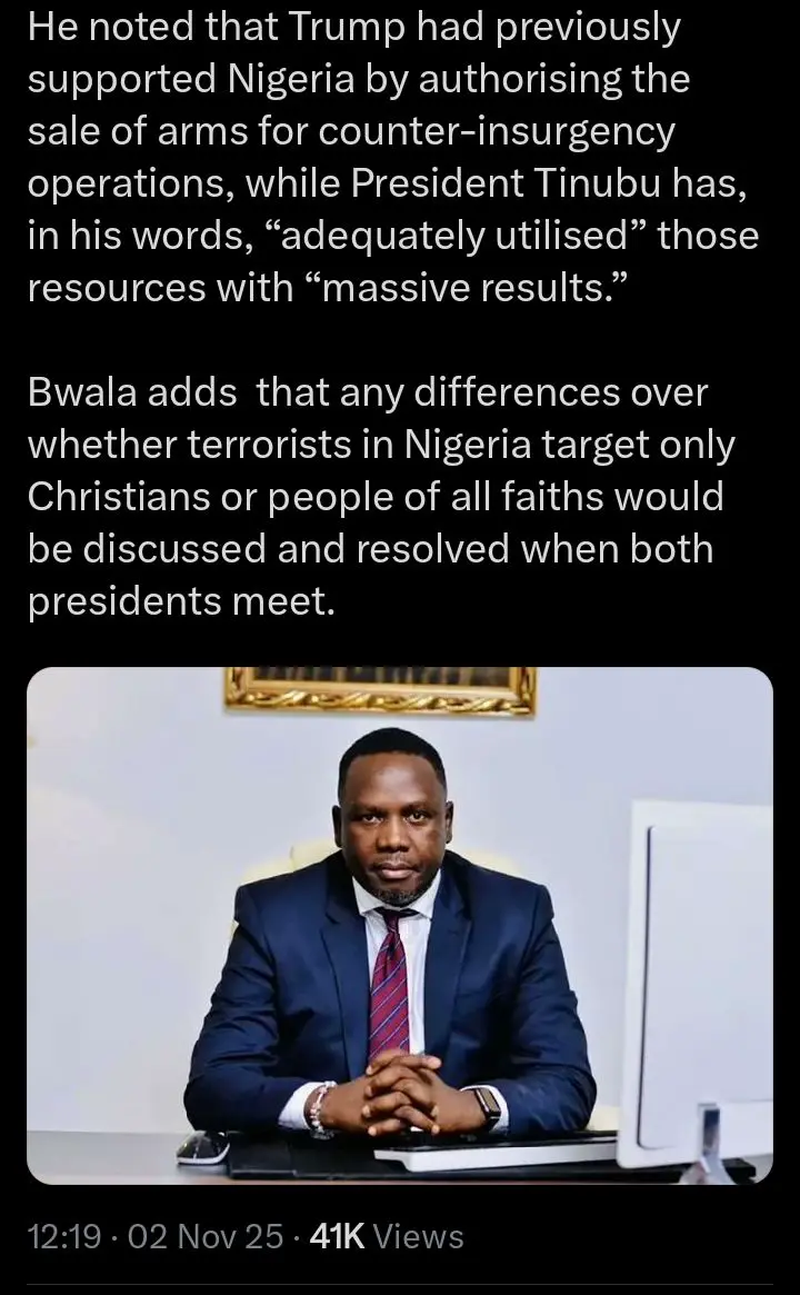 Both leaders share a mutual commitment to combating insurgency and terrorism, building on prior U.S. support for Nigeria through arms sales authorizations.