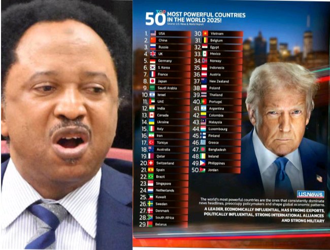 A chieftain of the All Progressive Congress, APC and former Kaduna lawmaker, Senator Shehu Sani has taken to his official X account to react after he saw the list of the top 50 Most Powerful Countries In 2025.