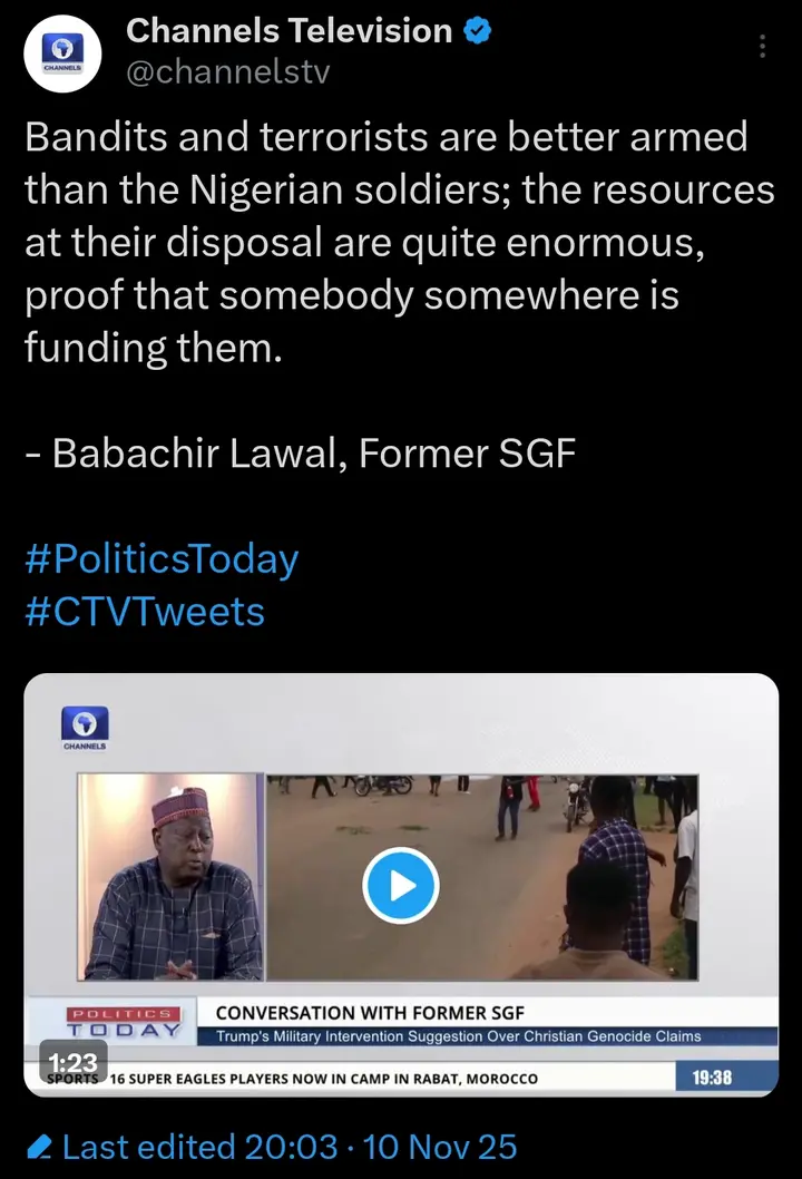 Former Secretary to the Government of the Federation, Babachir Lawal, has claimed that bandits and terrorists operating across Nigeria are better equipped than the country’s military forces.