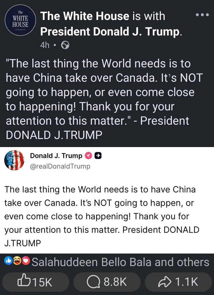 Although Trump did not reference any specific developments that prompted the comment, the statement is consistent with his broader foreign policy stance, which has frequently framed China as the United States’ primary strategic rival. During his time in office, Trump repeatedly raised alarms over Chinese investments, influence campaigns, and economic leverage, both in North America and globally, arguing that they posed threats to national sovereignty and long-term security.