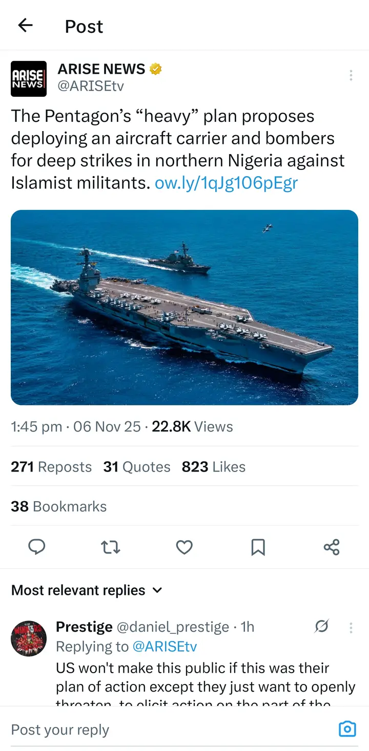 According to the Arise News report on Thursday November 6, 2025, the Pentagon has came up with different types of contingency plans for potential military operations in Nigeria, aimed at addressing the ongoing threat posed by Islamist militant groups in the northern regions of the country. These plans, formulated in rxesponse to directives from President Donald Trump, include options ranging from limited interventions to more extensive engagements.