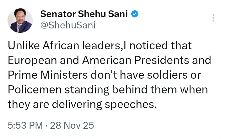 This statement was contained in a post that he shared on his official X handle on Friday, November 28, 2025.